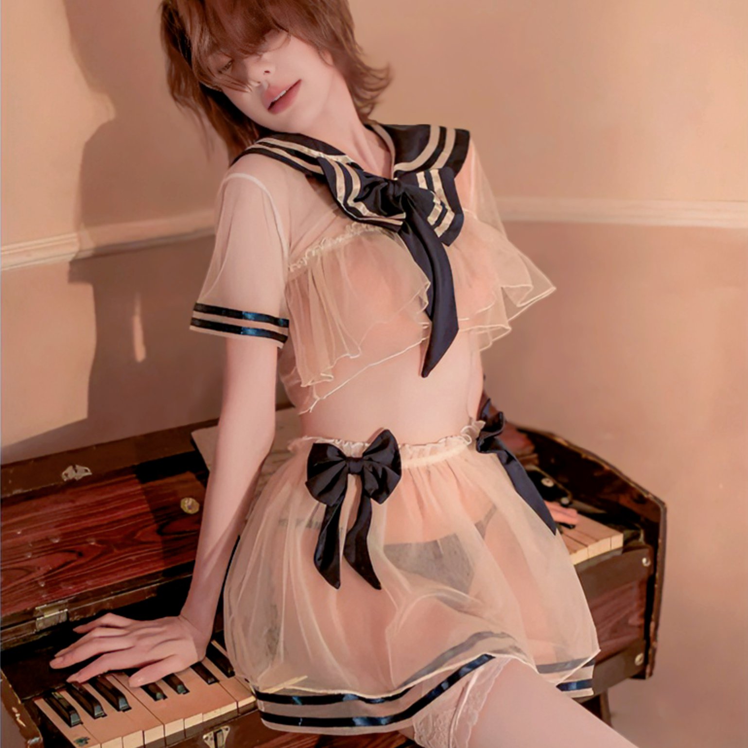 Made from a blend of high-quality cotton and spandex, the main fabric of the set is soft, breathable, and offers just the right amount of stretch for all-day comfort. The mesh components are crafted from a durable nylon blend that is gentle on the skin and resistant to snags, ensuring longevity even with regular wear. Whether worn for a themed party, a playful photoshoot, or as a unique loungewear option, this Academy-style Sweet Mesh Uniform Set is sure to make a statement, encapsulating the joy of youth with a touch of modern elegance.